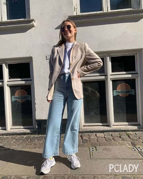 如果觉得牛仔阔腿裤不够有特色的话,那阔腿的西装裤来一条怎么样呢,搭配上一双AJ或NB的运动鞋,简直不要太帅哦!从职场到街头,都绝对能轻松hold住。