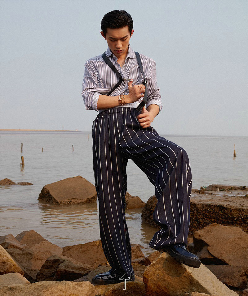 《T》中文版六月刊「旅行与时尚」特辑封面和内页大片释出,易烊千玺三登封面,尝试全新复古风格,展现属于少年的成长与蜕变。在释出的杂志内页大片中,易烊千玺梳起干净利落的背头,身穿复古廓形西装,或悠闲自在,或儒雅内敛,举手投足间尽显随性洒脱。