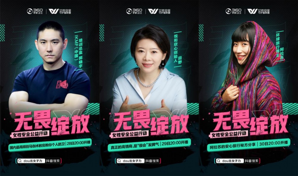 除了微博和抖音的接力活动,最近几天,“无畏绽放”女性安全公益行动还在连续开展多场直播节目,节目邀请到了IKMF(中国)培训总监郭晓宇进行防卫术教学的同时,还分别邀请到了悦和欣心创始人田野为大家做女性心理健康方面的指导,以及环球旅行博主阿拉苏分享旅行安全小贴士。此举也是希望打破用户常规的安全范围,“跨圈”去培养用户关注泛安全的意识。