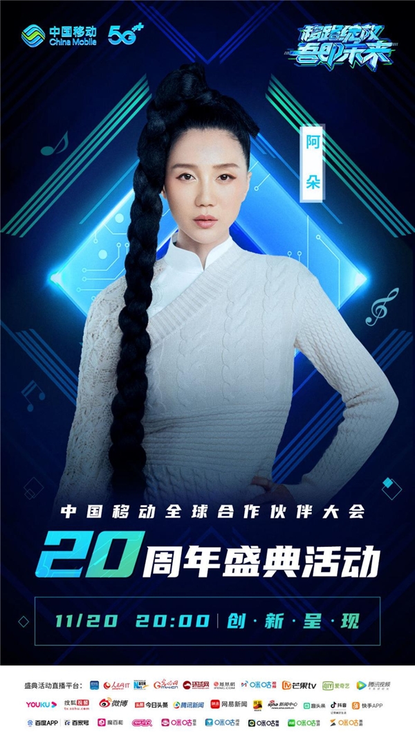 另外,“AI姐姐”朱婧汐也出现在了移动20周年盛典的官宣海报中。《浪姐》初舞台让我们看到了朱婧汐对未来感的思考,在她“人类观察计划”中的每一场秀都把科技指数点满、新奇又酷炫。